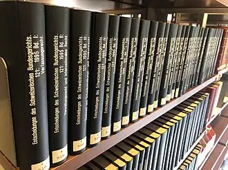 Les lois fédérales sont les actes adoptés par l'Assemblée fédérale selon la procédure législative ordinaire ; ce sont donc des lois au sens formel. Elle contiennent les principes et les règles de droit importants[20]. Certaines rassemblent l'ensemble des règles relatives à une matière en un tout systématique et rationnel : on parle de Code[21].