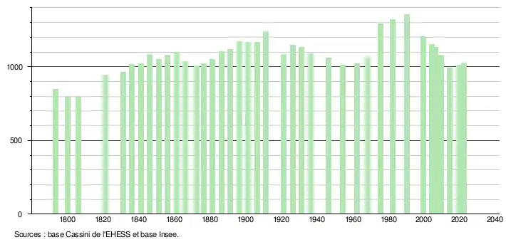 - ↑ Fiches Insee - Populations de référence de la commune pour les années 2006, 2007, 2008, 2009, 2010, 2011, 2012, 2013, 2014, 2015, 2016, 2017, 2018, 2019, 2020, 2021 et 2022.