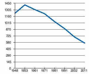- 1 2 (sr + en) « Livre 20 : Vue d'ensemble comparative de la population en 1948, 1953, 1961, 1971, 1981, 1991, 2002 et 2011, données par localités) » [PDF], pages du recensement de 2011 en Serbie - Institut de statistique de la république de Serbie, (consulté le )