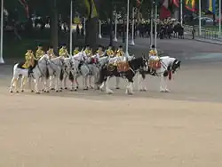 Les Drum Horse des Horse Guards britanniques sont sélectionnés sur leur capacité à porter deux gros tambours en argent[1], d'un poids total 45 kg[2], et à se laisser diriger par des rênes attachées aux pieds du cavalier[1]. De plus, ils doivent être tolérants aux bruits[8].