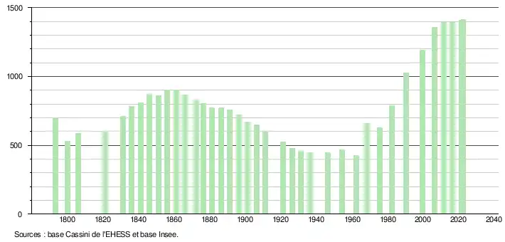 - ↑ Fiches Insee - Populations de référence de la commune pour les années 2006, 2007, 2008, 2009, 2010, 2011, 2012, 2013, 2014, 2015, 2016, 2017, 2018, 2019, 2020, 2021 et 2022.