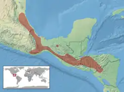 - au Honduras où elle est présente entre 780 et 1 900 m d'altitude ;