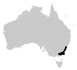 Cette espèce est endémique d'Australie[1]. Elle se rencontre en Nouvelle-Galles du Sud au sud de Sydney, dans le Territoire de la capitale australienne et dans l'Est de l'État de Victoria ce qui représente 767 400 km2[2].
