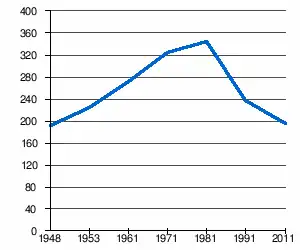 - 1 2 (sq) « Évolution de la population 1948-2011 », sur pop-stat.mashke.org (consulté le ).