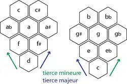 À partir de la version diatonique, si l'on oriente les tierces avec des angles différents selon que la tierce est majeure ou mineure, symétriquement pour chaque main, on obtient la version chromatique.