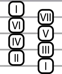 Dans sa version diatonique, les 7 notes de musique sont réparties alternativement sur deux lignes parallèles, sur autant d'octaves que l'on veut. Puisque l'on a un nombre impair de notes, les octaves sont elles aussi réparties alternativement d'un côté à l'autre.