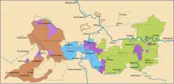 - L'Anhalt occidental (le Haut-Anhalt) était également englobé par ces deux derniers districts, et dans le duché de Brunswick-Lunebourg.