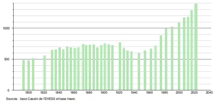 - ↑ Fiches Insee - Populations de référence de la commune pour les années 2006, 2007, 2008, 2009, 2010, 2011, 2012, 2013, 2014, 2015, 2016, 2017, 2018, 2019, 2020, 2021 et 2022.