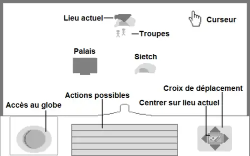 Il peut parler avec les personnages et leur demander de le suivre dans la limite de deux compagnons[8]. Au fil du jeu, il apprend la télépathie (progressivement d’une petite étendue à la planète entière suivant son niveau de charisme), ce qui lui permet de recevoir des rappels où qu’il soit lors de phases de jeu obligatoires comme les paiements à l’Empereur[9].