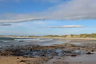 - ↑ « Victory! 200K Seawall stopped from destroying carrowmore sand dunes and doughmore beach. », sur savethewaves.org (consulté le )