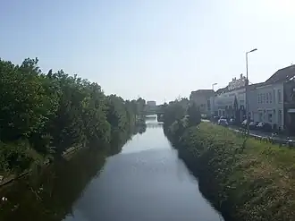 Le canal de Furnes peu après les quatre écluses.