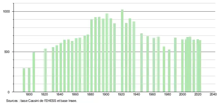 - ↑ Fiches Insee - Populations de référence de la commune pour les années 2006, 2007, 2008, 2009, 2010, 2011, 2012, 2013, 2014, 2015, 2016, 2017, 2018, 2019, 2020, 2021 et 2022.