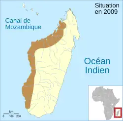 Cette espèce est endémique de l'Ouest de Madagascar. Elle se rencontre entre Ambanja et le parc national de Tsimanampetsotsa. Elle est présente du niveau de la mer jusqu'à 400 m d'altitude[2],[3].