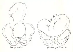 - par présentation anormale du fœtus, comme la présentation du siège ou présentation podalique, la présentation de la face, les présentations du front et du bregma, la présentation transverse, la présentation face vers l'avant et la dystocie des épaules ;