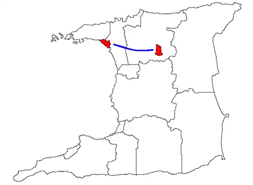 Cette agglomération s'étend de Port-d'Espagne – la capitale – à Arima, à vingt-quatre kilomètres plus à l'est.