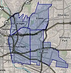 - (en) Cet article est partiellement ou en totalité issu de l’article de Wikipédia en anglais intitulé « East Los Angeles (region) » (voir la liste des auteurs).