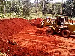 Le climat tropical et le climat équatorial produisent des sols latéritiques de couleur rouge, des sols pauvres sur lesquels la végétation naturelle est la forêt dense (ou jungle). Les sols latéritiques obtenus par une hydrolyse alcaline des sols, dans des zones à forte humidité et température, sont caractérisés de bas en haut par un horizon de départ, poreux, c'est-à-dire la zone d'attaque de la roche, puis un horizon tacheté correspondant à un premier degré d'accumulation, puis un horizon rouge représentant un stade plus avancé, enfin un horizon supérieur « podzolé », c'est-à-dire appauvri sous l'effet d'un lessivage. Sous forêt les hydroxydes floculent vers la base du sol, alcaline; des argiles plus ou moins enrichies en hydroxydes, se forment au-dessus, en milieu plus acide; lorsque ce matériel passe en conditions de savane, l'évaporation entraîne des remontées, les hydroxydes précipitent alors, se déshydratent, cristallisent, et l'on aboutit à une cuirasse latéritique[31]. Le défrichage des zones forestières tropicales en vue de l'agriculture entraîne rapidement la formation de cette cuirasse stérile et s'avère, pour cette raison entre autres, catastrophique dans la plupart des cas[32].
