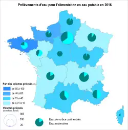 - ↑ « Prélèvements quantitatifs sur la ressource en eau (données 2016) » [PDF], sur eaufrance.fr, (consulté le ), p. 9.