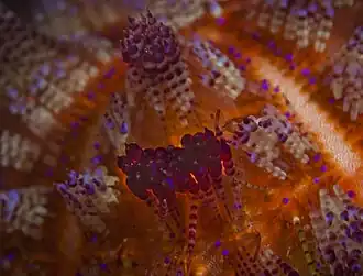 - 1 2 (en) Christopher Mah, « Shrimps love Sea Urchins : videos showing tropical crustacean-urchin love », sur Echinoblog, (consulté le ).