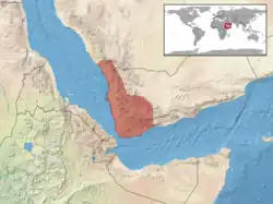 Cette espèce se rencontre dans le sud-ouest de l'Arabie saoudite et dans l'ouest du Yémen[1].