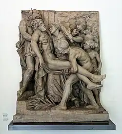 - Corps d'un spartiate tué, rapporté à sa mère, 1885, haut-relief en plâtre, second prix de Rome ;