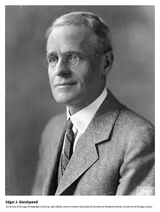 - ↑ « Edgar J. Goodspeed (1871-1962) », sur goodspeed.lib.uchicago.edu (consulté le )