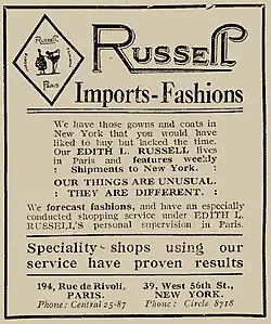 En 1920, en raison du sentiment anti-allemand à Paris, pendant et juste après la guerre, elle anglicise son nom de famille en « Russell ». Les maisons de couture françaises ont banni des journalistes, et dans certains cas, des anciens clients qui ont des noms à consonance allemande[21].