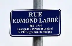 Edmond Labbé ( à Paris[1]- à Yvetot) est un enseignant et premier directeur général du sous-secrétariat d'État à l'enseignement technique en 1920. Il est un des fondateurs de l'AFDET (Association Française pour le Développement de l'Enseignement Technique), dont Edouard Herriot, président de l'AFDET de 1930 à 1952, s'adressant à lui lors de la fête en son honneur lors de son départ à la retraite, déclara : « La résurrection de l'enseignement technique, c'est votre œuvre ; ce n'est pas l'œuvre d'un autre, c'est votre création. C'est vous qui avez donné vie à cet enseignement et qui l'avez mis dans un tel état qu'à l'heure actuelle, il est à l'abri de tout danger[2]».