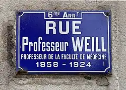 Une rue porte le nom de rue du Professeur-Weill à Lyon[5]. Elle s'appelait rue Suchet jusqu'à son renommage en 1925.