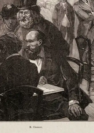 Edward Chamier est né en 1840 en Angleterre d'une famille huguenote émigrée après la révocation de l'édit de Nantes. Il travaillait dans une compagnie d'assurance[3]. Passionné par les échecs, il remporta un tournoi au café de la Régence en 1874, le deuxième tournoi national de 1881 et le tournoi à handicap annuel du café de la Régence en 1883[4]. Il participa au match par correspondance Paris-Vienne en 1884, mais se retira après un désaccord avec Jules Arnous de Rivière et Albert Clerc[2].