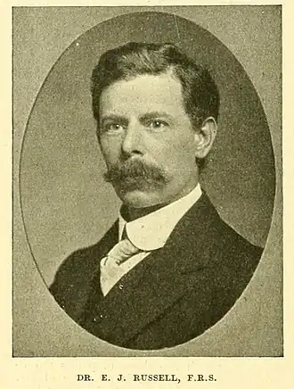 Edward John Russell, officier de l'Empire britannique, membre de la Royal Society[2] ( - ), est un spécialiste britannique de la chimie du sol, directeur de la station expérimentale de Rothamsted de 1912 à 1943[3]. Il est à l'origine de la création de l'Imperial Agricultural Bureaux, futur Commonwealth Agricultural Bureaux, dans le but d'améliorer les échanges d'informations à l'échelle internationale, dans le domaine de l'agriculture.
