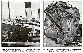 Le premier incident grave de la carrière de Smith survient le 20 septembre suivant. Alors que l’Olympic quitte le port de Southampton, les machines du navire attirent un croiseur de la Royal Navy, le Hawke qui heurte violemment le paquebot, obligeant la White Star à l'envoyer dans les chantiers navals Harland & Wolff[23]. La responsabilité de l'accident n'est cependant pas rejetée sur Smith mais sur le pilote chargé de la manœuvre en zone côtière[24]. À la fin des réparations, il reprend le commandement du paquebot jusqu'au , date à laquelle il cède le navire au capitaine Herbert Haddock[25].