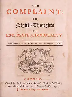 Son âme tourmentée laissa à la postérité une œuvre personnelle et profonde, son poème en vers blanc Plaintes ou Pensées nocturnes sur la vie, la mort et l’immortalité (1742-1745), connu sous le nom de Nuits, qui inaugura d'un genre sombre et mélancolique le romantisme anglais.