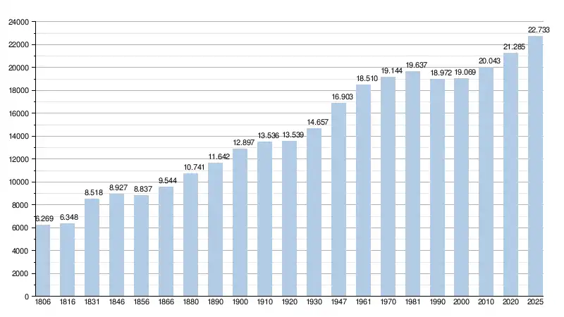 - Source : DGS - Remarque : 1806 jusqu'à 1981 = recensement ; depuis 1990 = nombre d'habitants chaque 1er janvier[2].