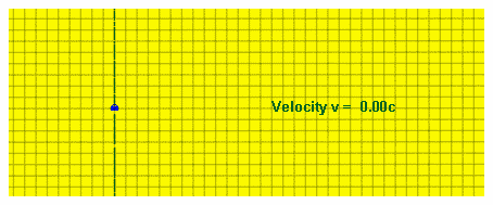 Dans le schéma 2, le point bleu représente l'observateur et la flèche représente le vecteur vitesse de l'observateur. Quand l'observateur est stationnaire, la grille x,y lui apparaît jaune et l'axe des y lui apparaît comme une ligne verticale noire. Lorsque la vitesse de l'observateur augmente vers la droite, les couleurs se décalent et l'aberration de la lumière déforme la grille. Quand l'observateur regarde en avant (à droite sur la grille), les points lui semblent vert, bleu et violet (décalage vers le bleu) et les lignes de la grille lui semblent plus éloignées entre elles. Si l'observateur regarde en arrière (à gauche sur la grille), les points lui semblent rouges (décalage vers le rouge) et les lignes lui semblent plus près les unes des autres. La grille n'a pas changé, seulement son apparence pour l'observateur.