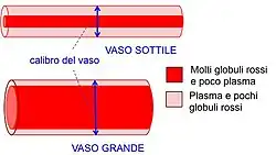 Quand le vaisseau est inférieur à 3 micromètres de diamètre la quasi-totalité du vaisseau est occupée par les érythrocytes en forme de parachute, il en résulte une augmentation de la viscosité.
