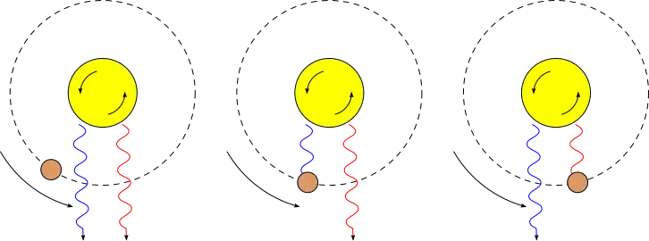 Le cas inverse doit être obtenu pour une orbite rétrograde ; telle semble être par exemple la situation de l'exoplanète WASP-17b, dont la découverte a été rapportée en [2].