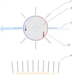 Radzievskii utilisa cette idée sur un corps en rotation, faisant varier l'albédo de celui-ci[2]. Paddack et John A. O'Keefe ont mis en avant le rôle principal de la géométrie de l'objet dans l'intensité de cet effet[3]. Paddack et Rhee ont suggéré que cet effet pouvait expliquer la rareté des petites particules asymétriques dans le Système solaire, qui auraient ainsi été éjectées[4].