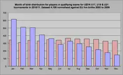 - ↑ Helsen, Starkes et Van Winckel, « Effect of a change in selection year on success in male soccer players », American Journal of Human Biology, vol. 12, no 6, , p. 729–735 (ISSN 1520-6300, PMID 11534065, DOI 10.1002/1520-6300(200011/12)12:6<729::AID-AJHB2>3.0.CO;2-7, lire en ligne)