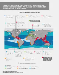 Les effets du réchauffement climatique sur les océans fournissent des informations sur les différents effets du réchauffement climatique sur les océans. Le réchauffement climatique peut affecter le niveau de la mer, les côtes, l'acidification des océans, les courants océaniques, l'eau de mer, les températures de surface de la mer[1], les marées, le fond marin, les conditions météorologiques et déclencher plusieurs changements dans la bio-géochimie des océans ; tous ces éléments affectent le fonctionnement d'une société[2].