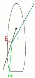 - : la portance latérale. Cette force est très faible comparée aux deux autres. Néanmoins, dans le cas notamment d'un spinnaker, cette force permet d'éviter l'enfournement[Note 16].
