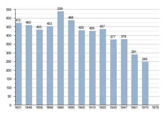 - Sources : INS, Rem. : 1831 jusqu'en 1970 = recensements[2].