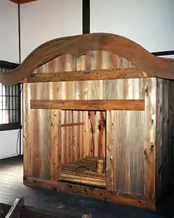 - Porte principale : le Kōrai-mon (高麗門) est nommé d'après l'ancien royaume coréen de Goguryeo (Kōrai en japonais). L'actuelle construction date de la fin de la période Edo (milieu du XIXe siècle).