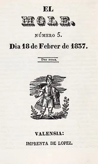 - 1 2 (ca) Enric Balaguer, « Una revista popular valenciana: «El Mòle» (1837 i 1840-41) », Caplletra. Revista Internacional de Filologia, , p. 69–78 (ISSN 2386-7159, DOI 10.7203/caplletra.4.7696, lire en ligne, consulté le )