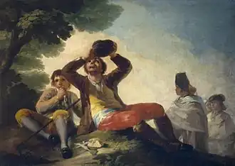 Il s'agit probablement d'une des scènes les plus populaires. Un homme boit à la régalade, selon la coutume catalane, alors que son compagnon mange de la ciboulette, alors que le buveur en profite pour s'accouder sur son front, ce qui a été interprété comme une allusion au Lazarillo de Tormes traditionnel, et largement exploité par la littérature espagnole.