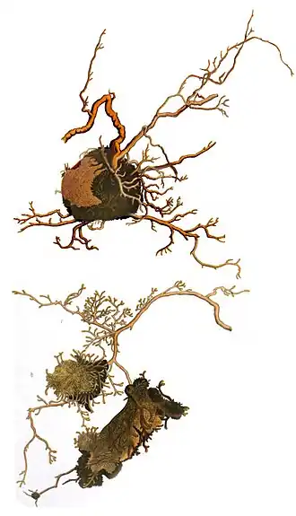 - « Peut-être vit-il alors en parasite sur les racines des arbres, comme ce paraît être le cas pour l'Elaphomyces granulatus sur les racines des Pins, qui en éprouvent une ramification anormale et des déformations »