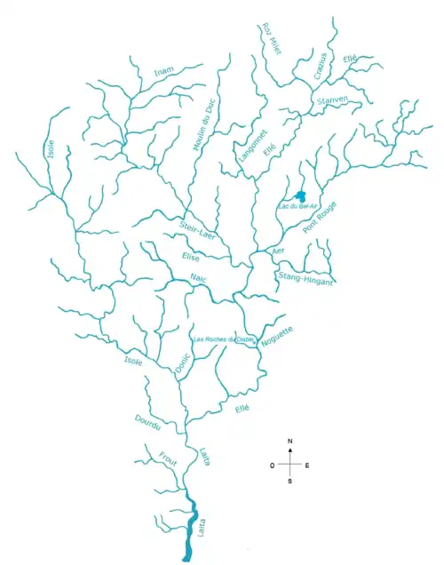 | Naïc | Staer Ehoc | 12 km | 31,5 km2 | affluent de l'Ellé, rive droite | |
