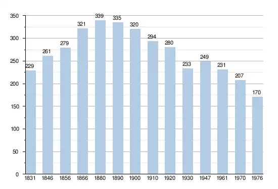 - Sources:INS, Rem:1831 jusqu'en 1970=recensements, 1976= nombre d'habitants au 31 décembre