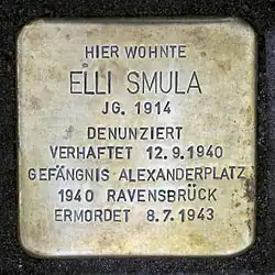 - 1 2 3 Claudia Schoppmann, « Elli Smula », Stolpersteine in Berlin (consulté le ).