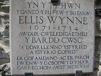 Ellis Wynne, né le et mort le , est un pasteur et écrivain gallois, auteur des textes parmi les plus importants et les plus influents de la littérature de langue galloise[1].